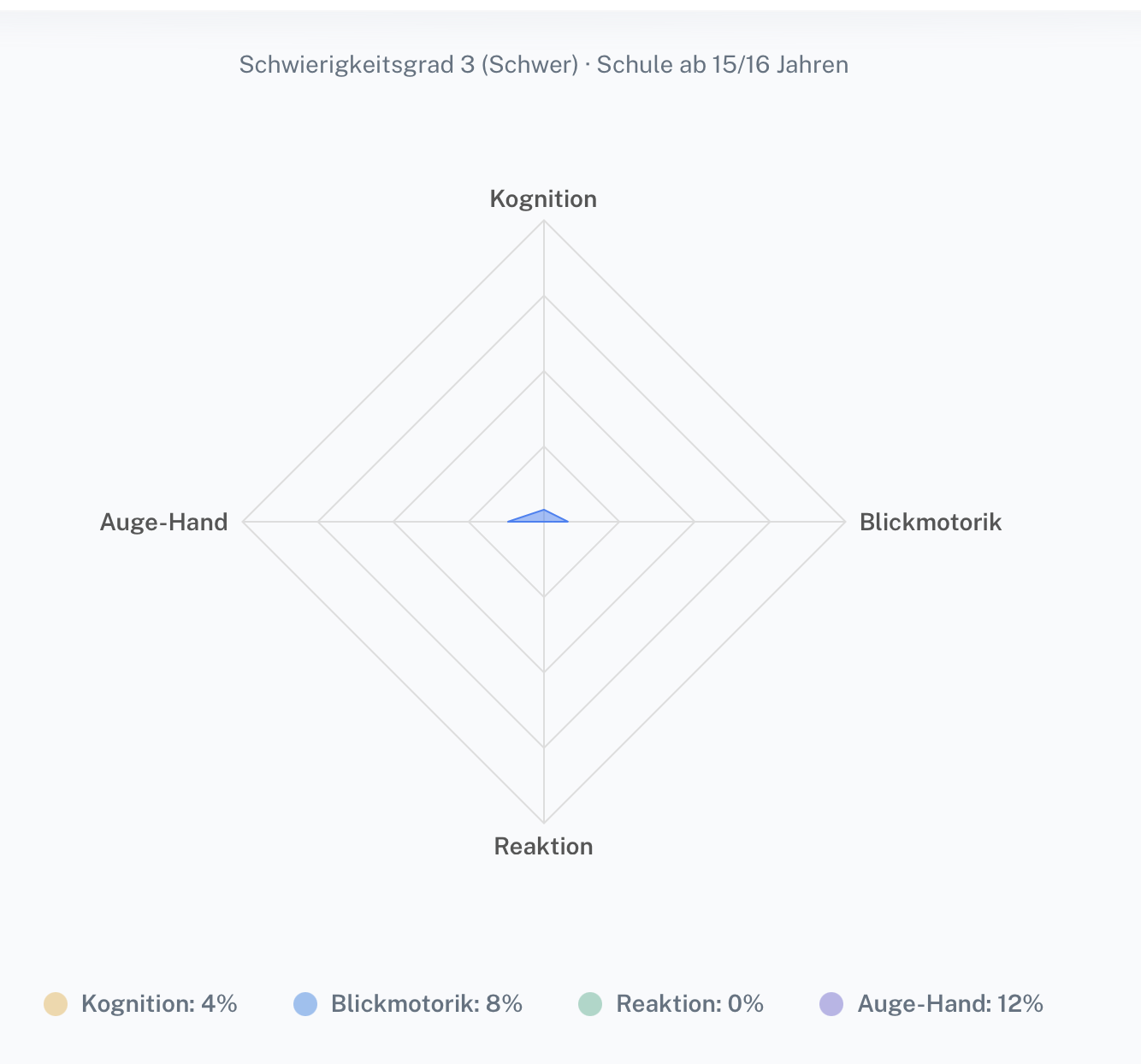 Zur Landingpage gehört nicht nur das Training selbst, sondern auch die sichtbare Auswertung. Die Fortschrittsansicht zeigt kompakt, wie sich ein Schüler in den wichtigsten Bereichen entwickelt.
